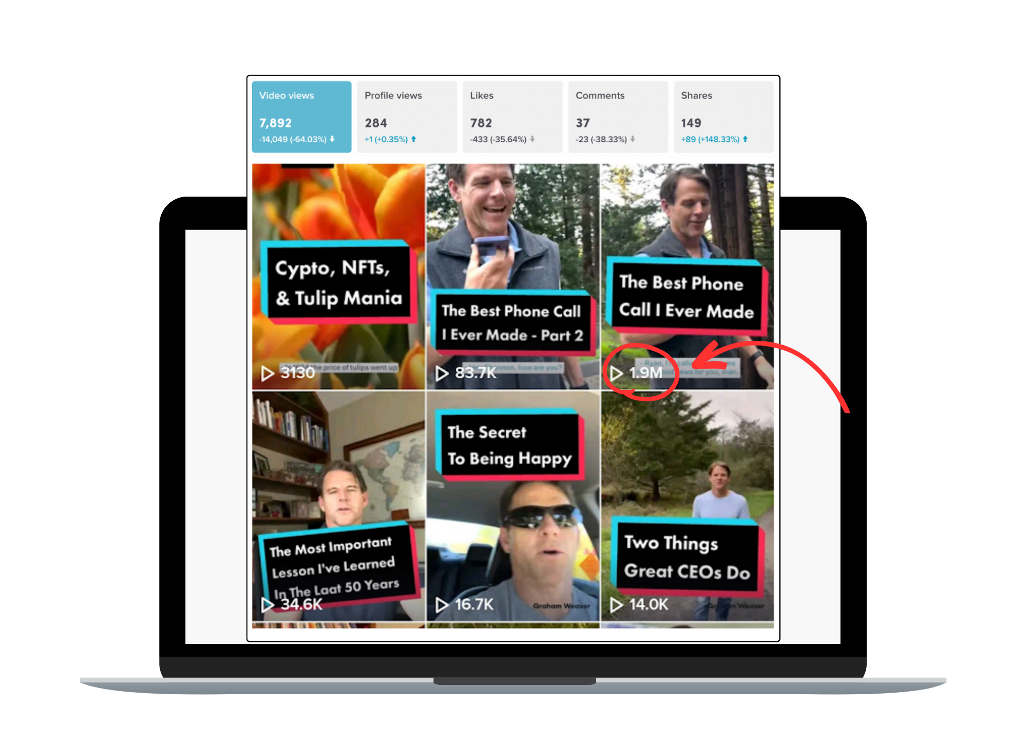 And just as predicted, the after-effects of this virality spread further than just these two videos. The virality of these two hits had a snowball effect and elevated the views and engagement with Graham’s older video content, enhancing the performance of these posts.