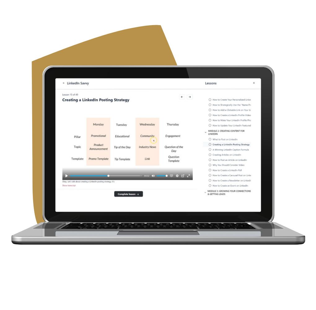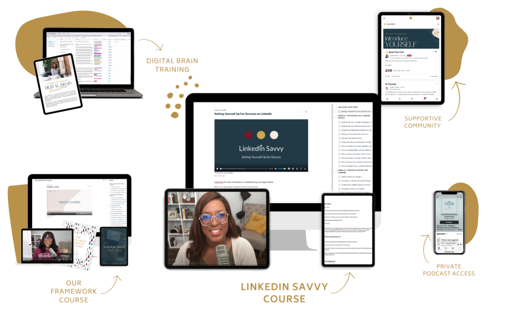 As soon as you sign up, you’ll get instant access to all the course materials in The LinkedIn Savvy Bundle. Begin your journey to LinkedIn mastery without delay.