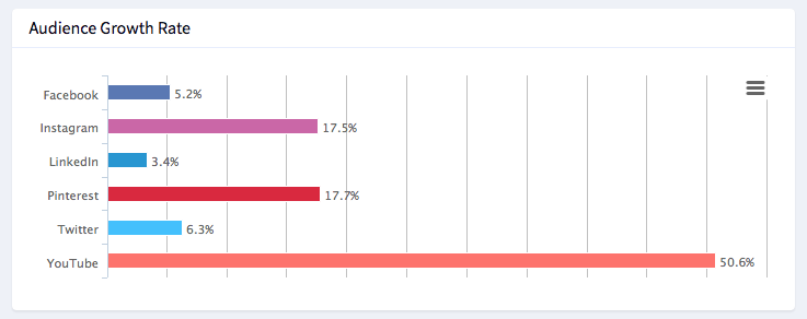 When tracking your followers and likes, also make sure to track the overall rate of growth as well. In the screenshot below (for example), you can see that my YouTube channel had the highest rate of growth this year.