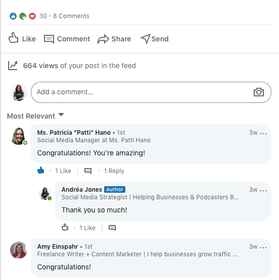 I always tell people that engagement counts for way more than follower count. A good engagement rate means that your content is resonating with people, and they want to talk about it! And authentic engagement cannot be bought, which makes it sort of priceless. As your audience grows, your engagement may drop as your total audience members increases. That’s normal, but if you see a drastic reduction, you may want to re-assess.